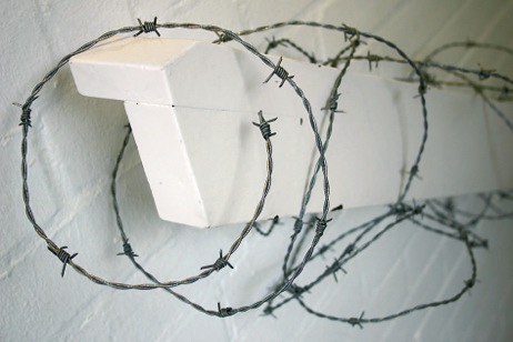 Handlauf, 2013 Stacheldraht, Ausstellungsansicht Galerie vom Zufall u. vom Glück, Hannover